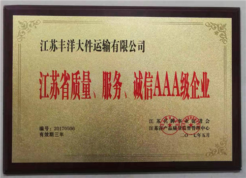 我司具備大型物件道路運(yùn)輸最高資質(zhì)(四類),中國物流與采購聯(lián)合會(huì)AAA級(jí)物流企業(yè),中國化工裝備協(xié)會(huì)會(huì)員企業(yè),通過ISO9001-20016國際質(zhì)量體系認(rèn)證,是江蘇省物流與采購聯(lián)合會(huì)理事單位、無錫市企業(yè)家協(xié)會(huì)理事單位,是江蘇省重點(diǎn)扶持的物流企業(yè)。